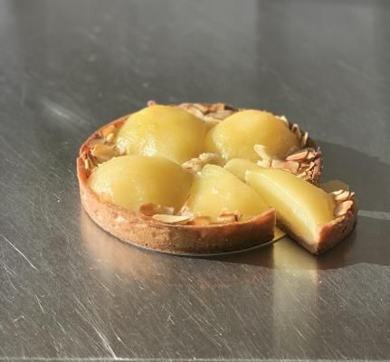 ほんのり瀬戸田のセーフティフルーツのベルガモットをしのばせて。 ラフランスの香りとベルガモットの余韻が心地よいタルトになりました。